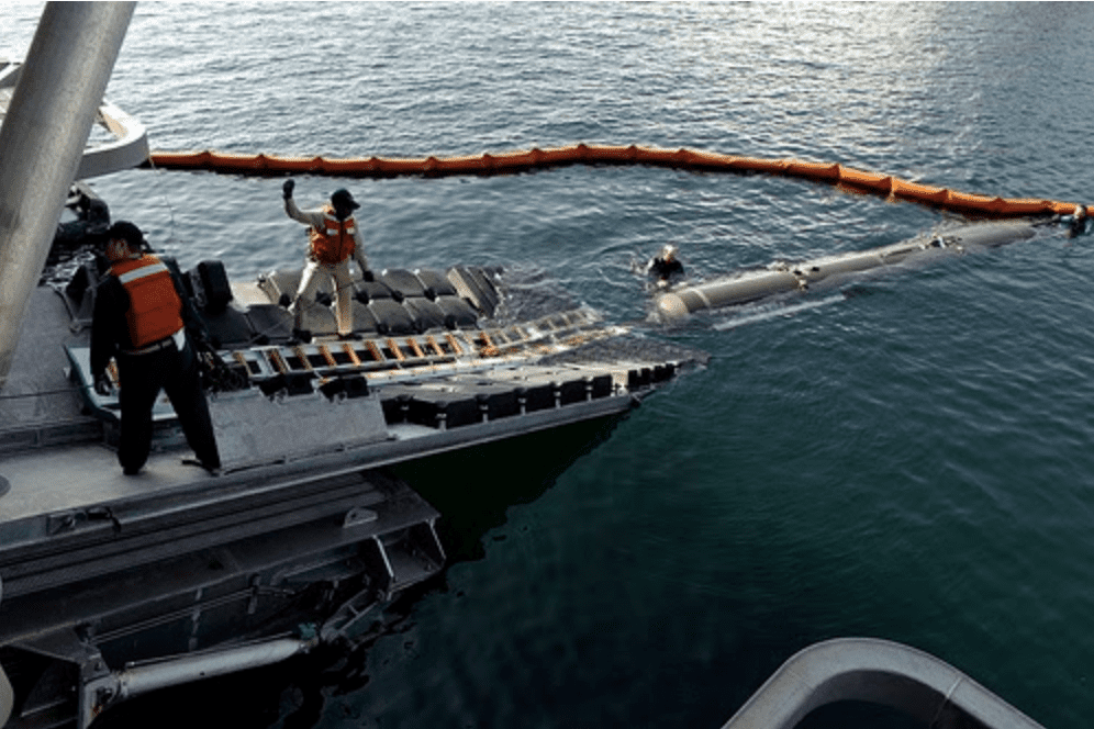 The Seahorse-class Autonomous Underwater Vehicle (AUV) is moved into position along with Sea Fighter’s (FSF-1) stern ramp during launch and recovery testing in San Diego in 2006. Image: U.S. Navy photo by Mr. John F. Williams (RELEASED)