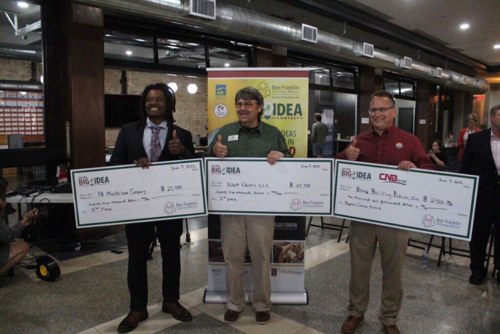 Two entrepreneurs split a $50,000 prize at the Ben Franklin BIG IDEA Contest that was held on June 9 at the North Central PA Launchbox in DuBois. Jeffrey Billett from Billett Electric LLC from Jefferson County, and Esperanzo Wilcox from PA Mushroom Company from Clarion County each received a $25,000 cash prize to help them boost their startups.
