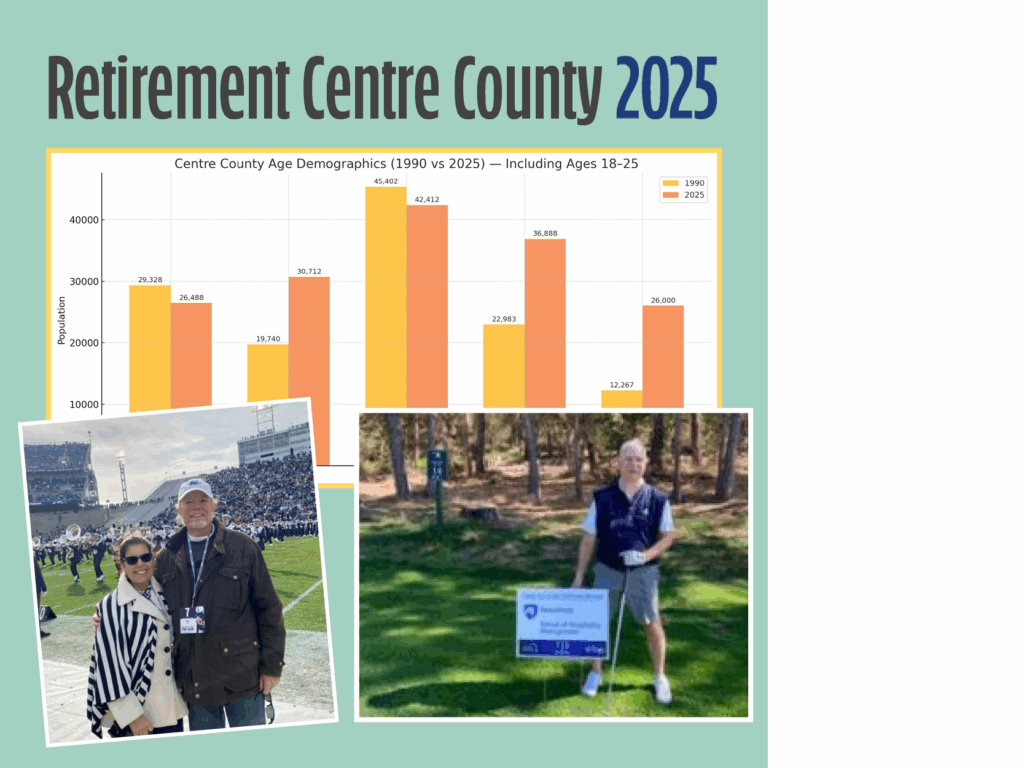 Since 1990, Centre County’s 65+ population has surged by more than 90%, outpacing nearly every other age bracket. From 2010 to 2020 alone, that group grew by 34.2%, while the under-18 population grew just 2%. HappyValley isn’t just getting “more mature,” it’s getting smarter, more engaged, and more magnetic.