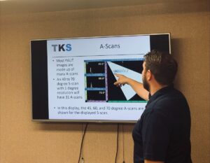 By Beverly Molnar Matthew Whiteman, one of the lead NDT instructors at TKS, teaches a training course for ultrasonic phased array inspection certification. State College-based TechKnowServ is a global leader in nondestructive testing that provides R&D for industries like railroad, petrochemical, defense and aerospace. It got its start when Tom Hay received his