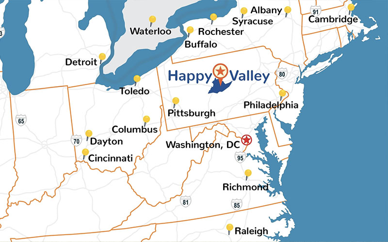 In industry and research over the last decade, the term “brain belt” has grown in popularity as a way of describing regions where the cost of doing business is relatively low, but resources like those offered by a research university are ample. In many instances, these regions boast a low cost of business because of existing infrastructure from traditional manufacturing – turning the locations from Rust Belt into Brain Belt assets from Upstate New York to North Carolina’s Research Triangle. Right in the middle is Happy Valley. Happy Valley has Penn State — one of the greatest research universities in the United States with its abundant resources, from facilities to labor, available at a fraction of the price of what companies could get elsewhere.
