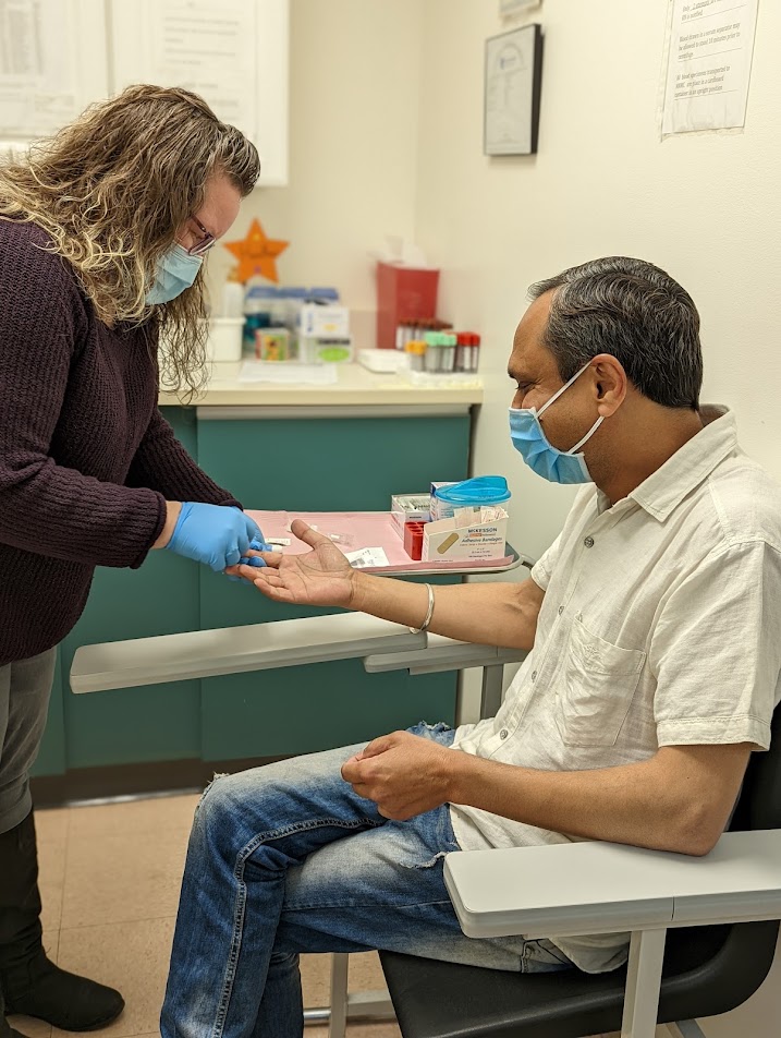 POC Lab Coordinator Tiffany Walden with a patient. PHOTO: Centre Volunteers in Medicine.